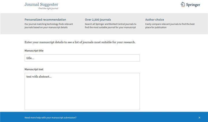 与上面那款出版社自己开发的小工具一样,Springer Journal Suggester也提供了相同的功能,作者可查询所有springer和BioMed Central 期刊。影响因子、编辑时间、拒稿率神马的也都尽收眼底哦。