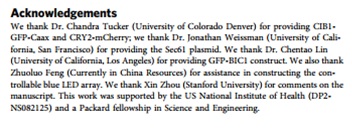 Duan L., Hope J., Ong Q., Lou H-Y., Kim N., McCarthy C., Acero V., Lin M., Cui B., Understanding CRY2 interactions for optical control of intracellular signalling, Nature Communications, 2017, 8:547