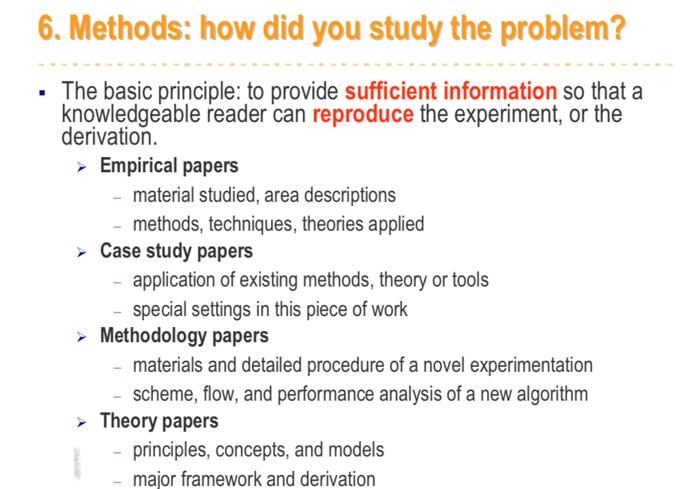 对研究方法的介绍也是对论文内容和结构的补充说明,这部分尽可能详尽地描述研究设计与执行中的细节,是对实验过程的完全陈述,不是只交代每一步应该做什么。撰写科技论文的很重要一部分就是决定什么信息该详细交代。不要照搬或引用实验室手册。以别的研究人员能够重复你的研究为目标。当正文放不下过多内容的时候,可以把实验细节作为补充材料提交。