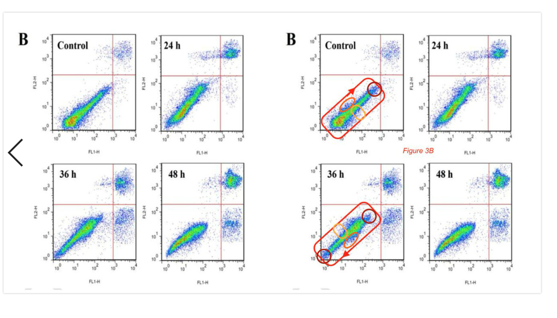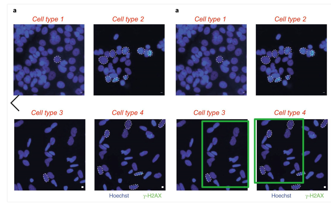 今天我们也一起来玩这样的图片找茬游戏,我们列举了Elisabeth Bik发布的6张嫌疑图片,答案我们放在文末,记住:答案采用的是Elisabeth Bik的解释,有些图片存在的问题可能不止答案中圈出的那些。考考你的眼里,看看哪些地方存在重复吧:
